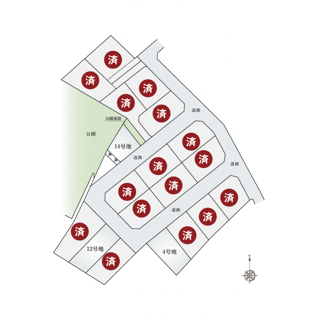 | 4号地 | 4,800万円 | 170.32㎡(51.50坪) | 106.24㎡(32.13坪) | ||
