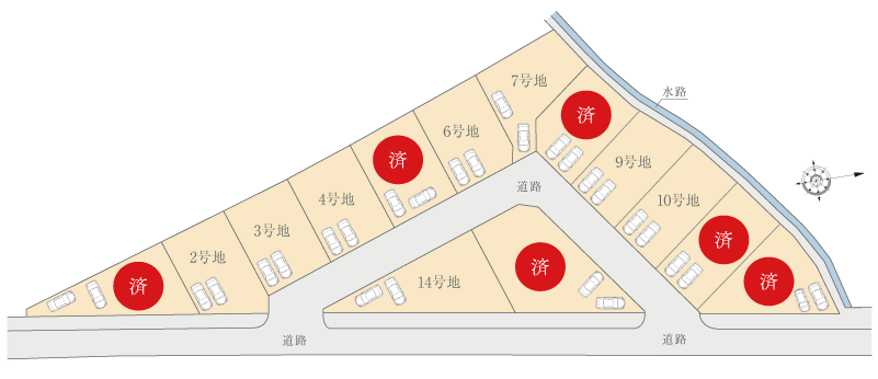 | 14号地 | 2,852万円 | 195.22㎡(59.05坪) | 82.39㎡(24.92坪) | ||