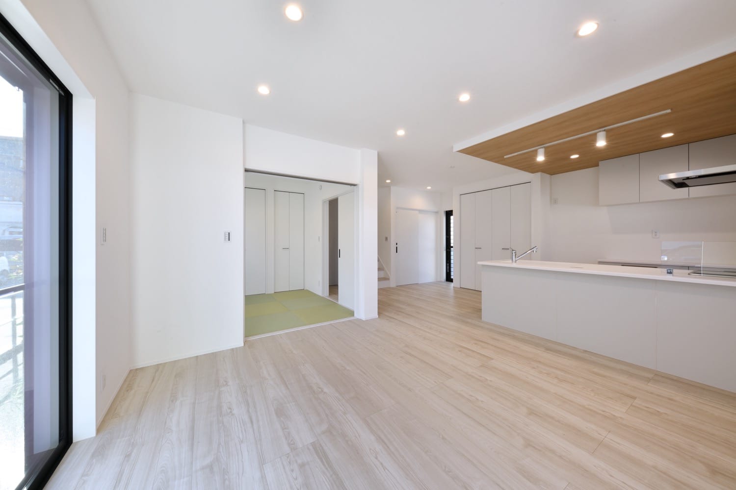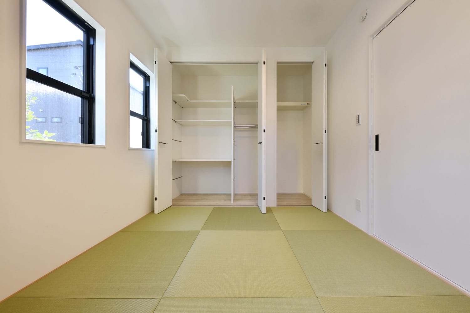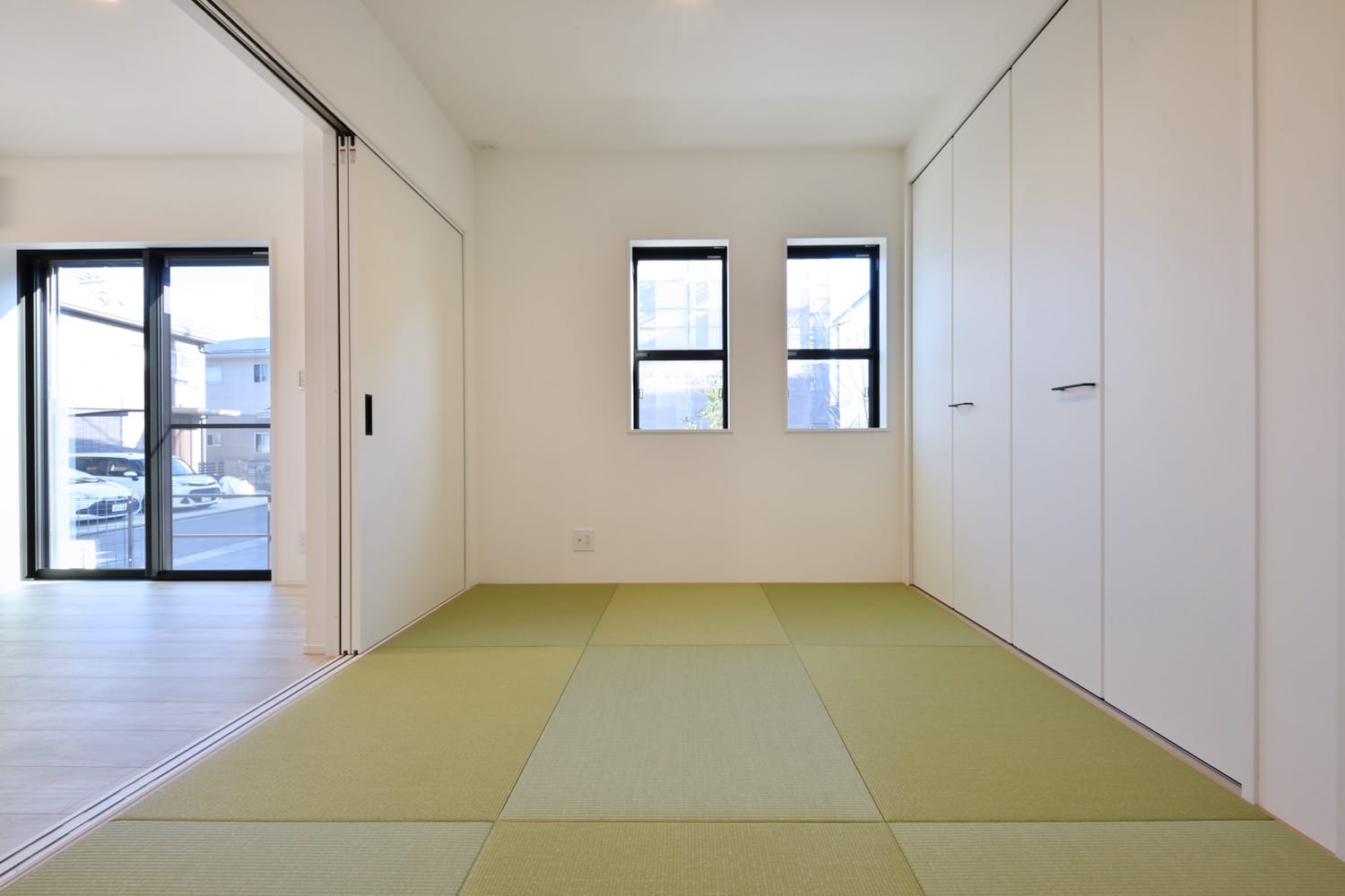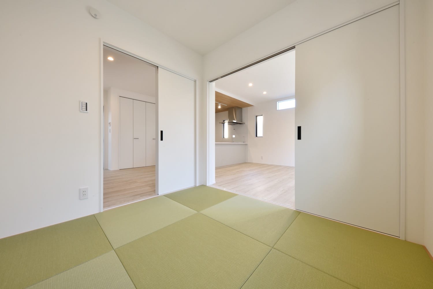 リビングサイドの和室は、畳の上でくつろいだり、子どもの遊び場、あるいは趣味のスペースなどリビングとは異なる用途で使えます。またゲストルームとしても最適です。