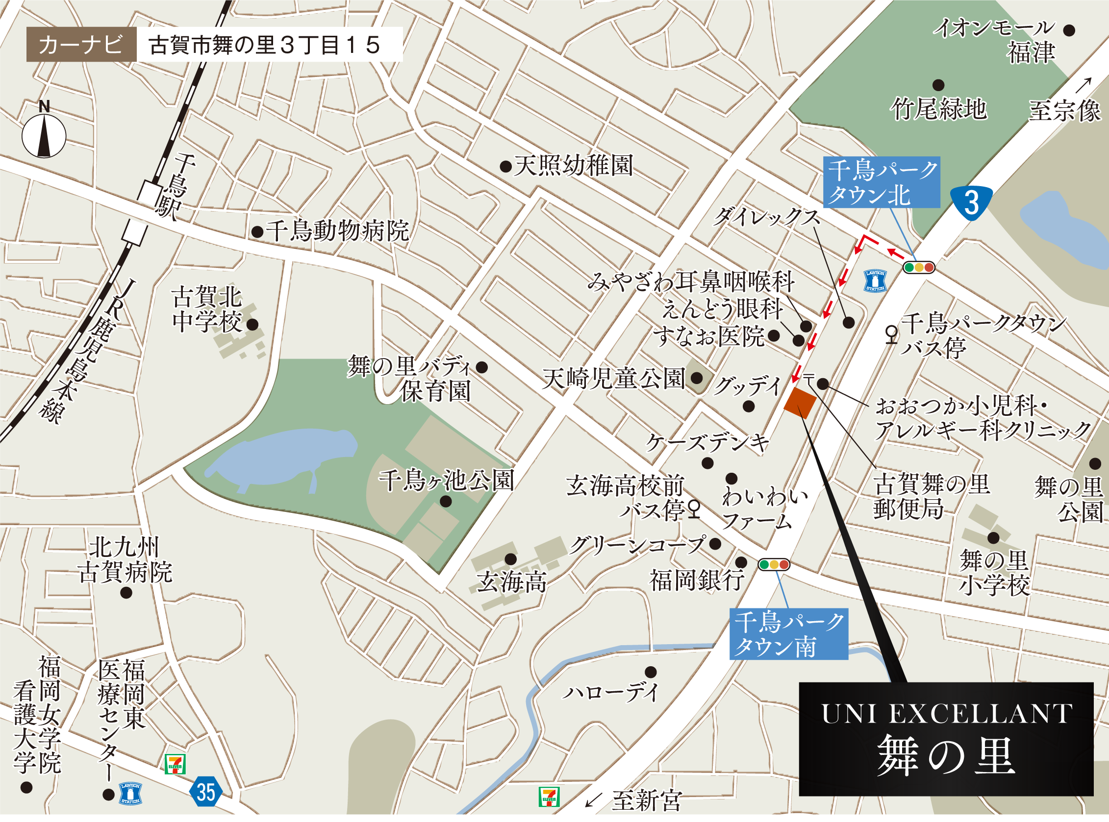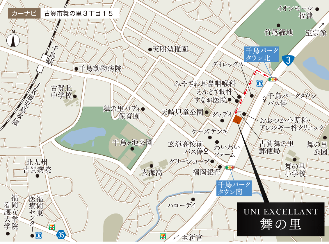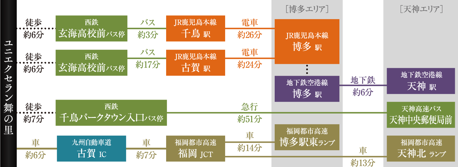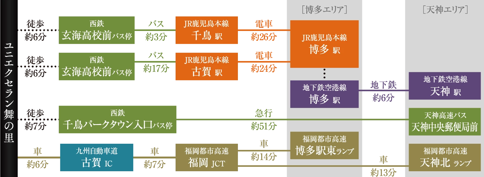 JR鹿児島本線「千鳥」駅約9分(徒歩6分バス3分)という理想のアクセス。