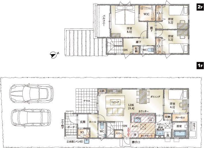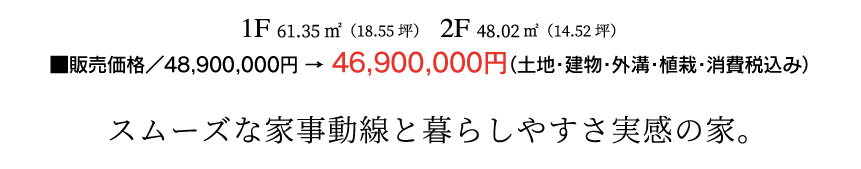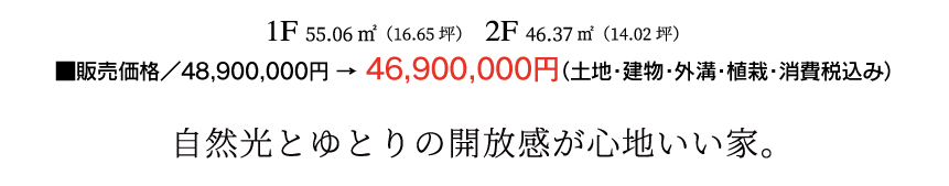 【建売物件概要】●総区画数/3区画●土地面積/173.36㎡〜173.79㎡●建物面積/101.43㎡〜109.37㎡●販売戸数/2棟●設計図書閲覧場所/第一ホーム株式会社●建築確認番号/第KJH24-01855-1号(令和6年9月18) 他●販売価格/4,890万円(2戸)●構造・規模/木造在来軸組工法2階建て●販売予定時期/令和6年11月●建物完成/令和7年4月●入居/即入居可●売主/第一ホーム株式会社●販売/第一ホーム株式会社