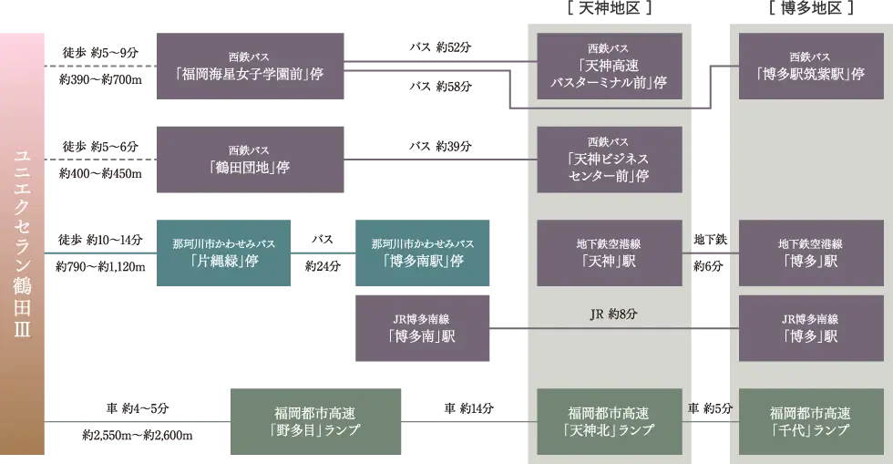 天神へも博多へも、使い分けできる多彩なアクセス。