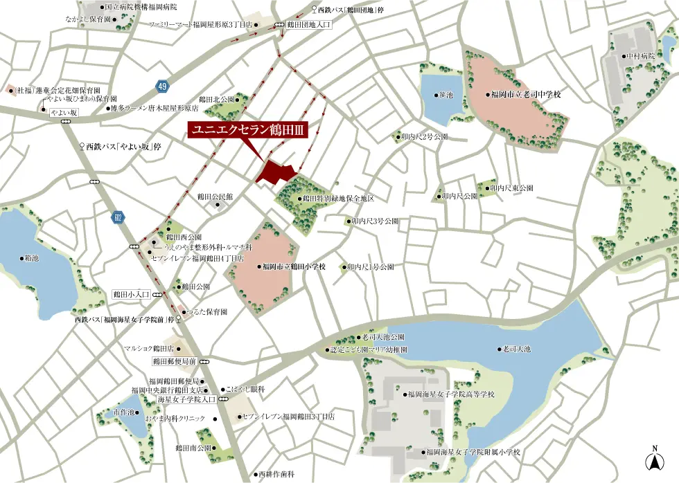 福岡市南区鶴田4丁目は、静かな街並みとほどよい利便性が美しく調和した住環境です。