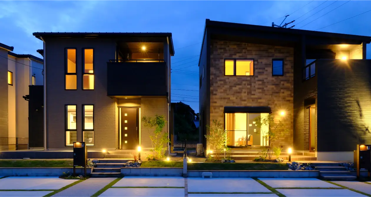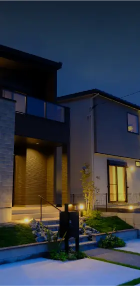 一邸一邸の玄関アプローチに添えた灯りが、帰宅の瞬間にやさしい安心を灯し、夜の街並みに静かな品格をもたらします。