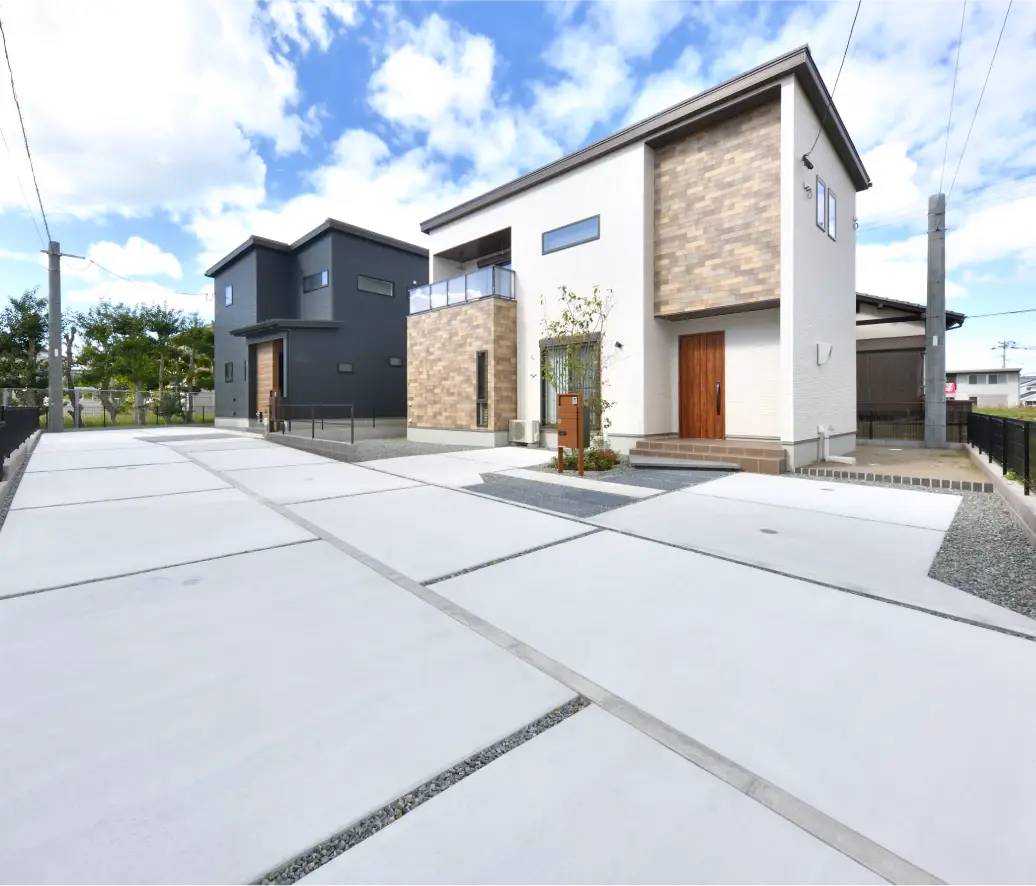 街に明るさと広がりをもたらすオープン外構は、視界を遮らないことで死角を減らし、防犯性を高める合理的なデザイン。通り抜けのない街区計画とあいまって、家族が毎日を安心して過ごせる落ち着いた環境をつくり出します。