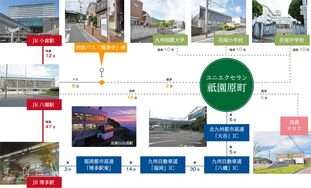 皿倉テラスまで徒歩約5分、スピナマートさくら通り店まで徒歩約9分。