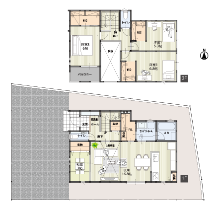 - 掲載の全体区画図は計画段階の図面を基に描き起こしたもので、実際のものとは若干異なります。また、敷地周囲の電線・標識・ガードレール等は表現しておりません。