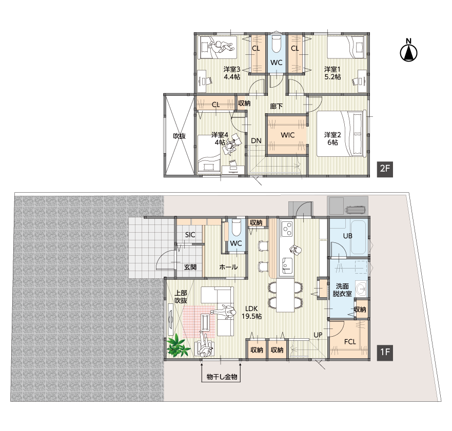 2階の4部屋はすべて独立しており、親子であってもプライバシーが確保されています。また、主寝室の大型ウォークインクローゼット(WIC)や各部屋にクローゼットが完備されていることも、収納スペースの充実により快適な生活が送れます。